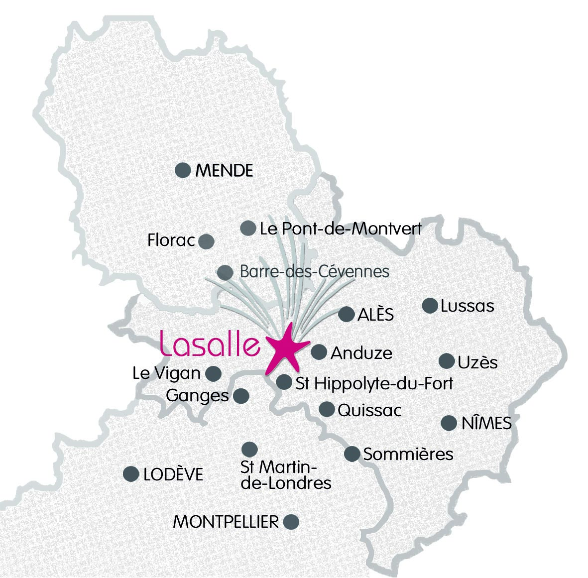 Lasalle est située à une demi-heure d’Alès, et une heure de voiture de Nîmes et Montpellier.