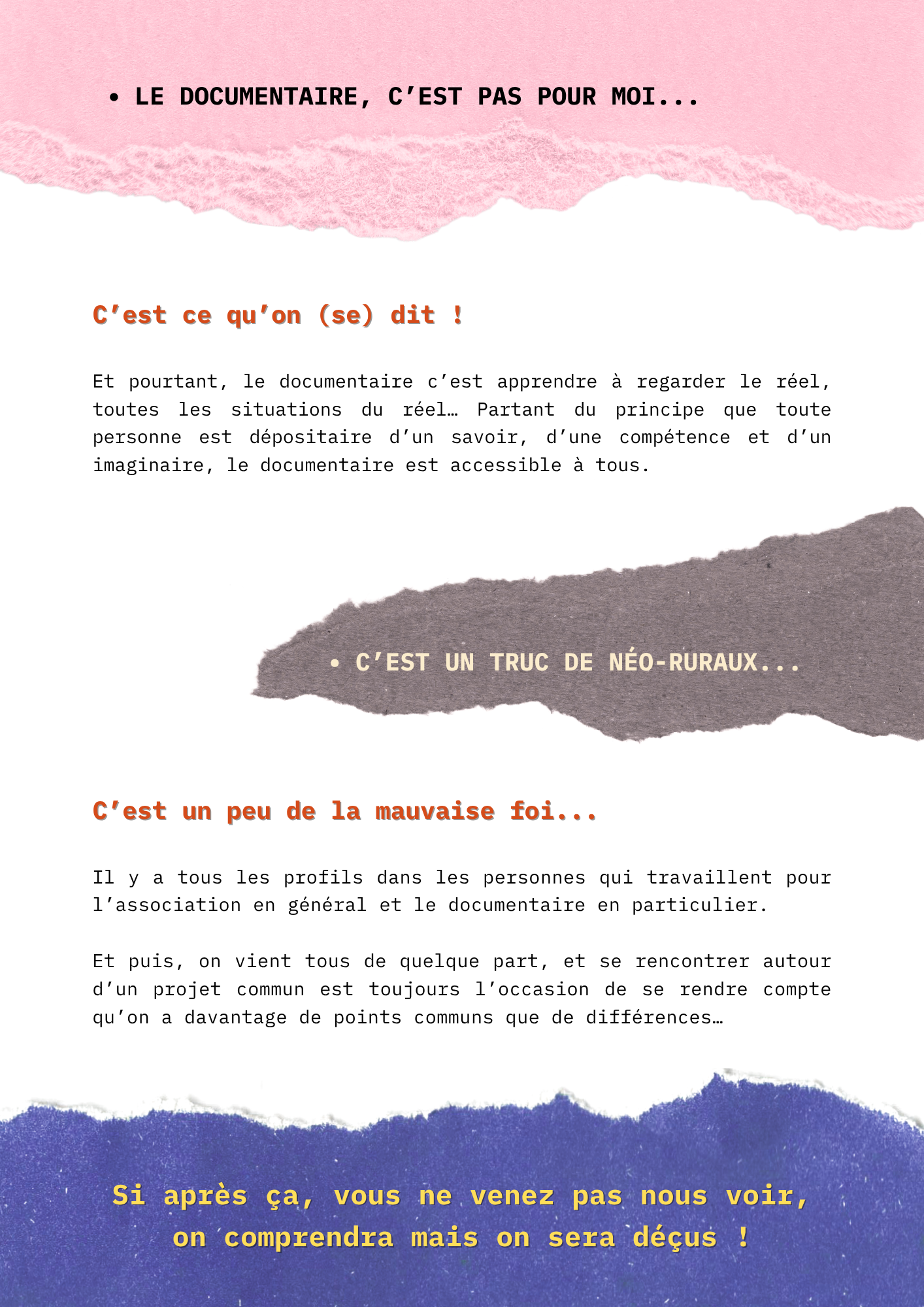 Pour l’association CHAMP-CONTRECHAMP, la diffusion de films documentaires n’est pas une fin en soi. Le Festival de Lasalle efface la frontière entre les professionnels et le public : pas d’espace VIP, pas de badges ou d’accessoires discriminants.